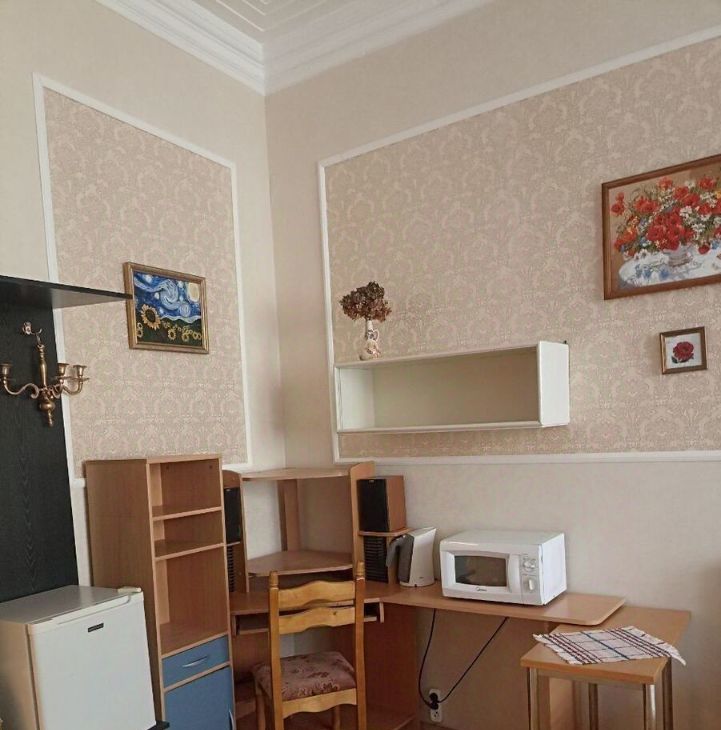 На кухне будет свое место, в комнате имеется холодильник, микроволновка, электрический чайник, компьютер, если нужен, и wi-fi.