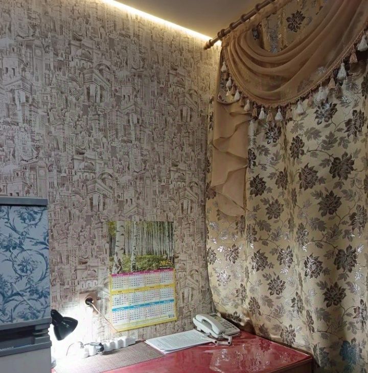 В комнате установлены новые стеклопакеты, шумоизоляция хорошая, шум со стороны дороги не слышен.