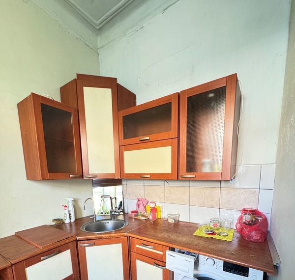 Состояние хорошее, сделан ремонт. В комнате раскладной диван, шкаф, кухонный гарнитур, рабочий стол, TV, холодильник. На кухне стиральная машина, плита, кухонный гарниткр с мойкой.