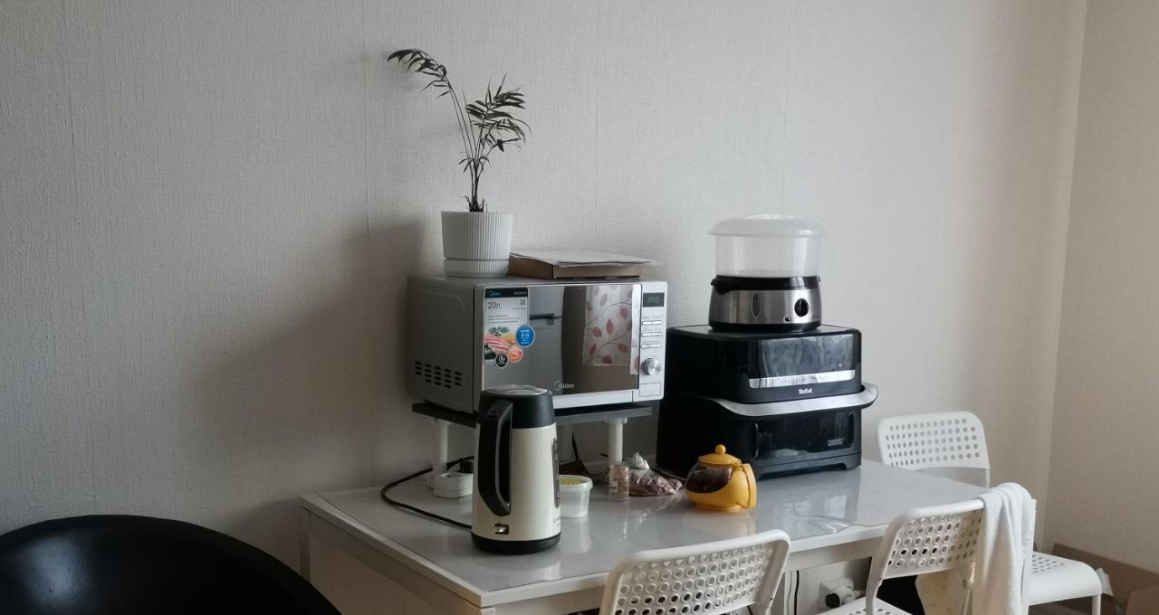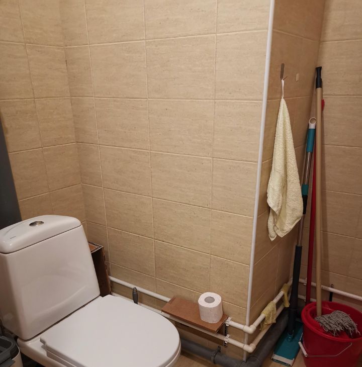 В комнате и квартире имеется все необходимое для комфортного длительного проживания. На кухне у каждого свое место - стол, шкаф.
