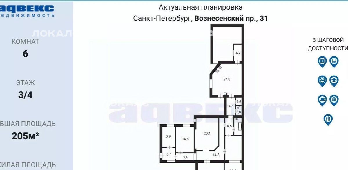 Комната Санкт-Петербург Вознесенский просп., 31 (32.0 м²)