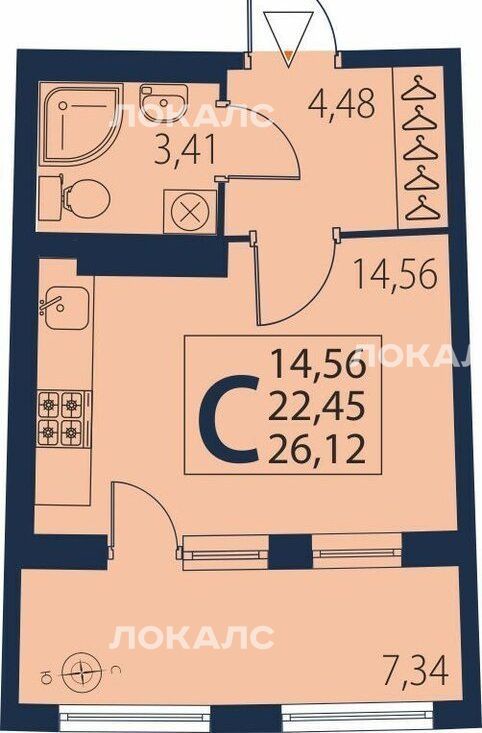Студия Санкт-Петербург пос. Парголово, ул. Тихоокеанская, 18к4 (24.0 м²)