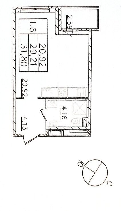Квартира-студия: посёлок Парголово, Михайловская дорога, 6 (29 м²)