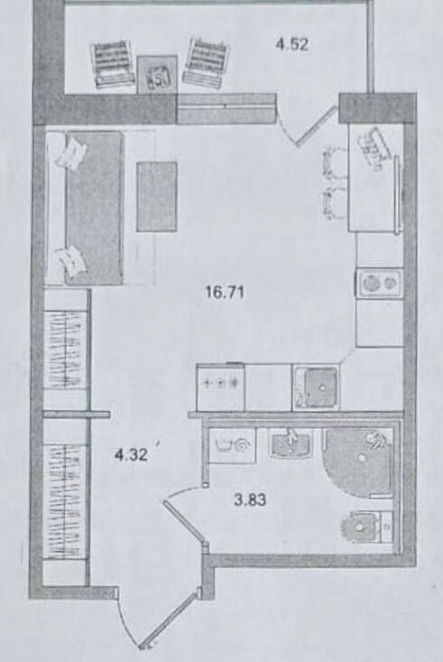 Квартира-студия: Санкт-Петербург, набережная реки Каменки, 19к4 (17 м²)
