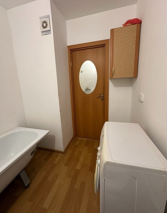Только на длительный срок сдается пустая студия. Из мебели предоставлен кухонный уголок , стол и табуретка и прихожая. Есть стиральная машинка, холодильник. В счет аренды будет приобретена электрическая плита.