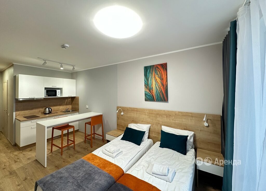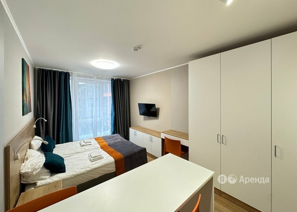 Сдаётся студия площадью 22 кв.м. с евроремонтом на 18 этаже в 20-этажном доме на срок от 11 месяцев. Из техники есть: