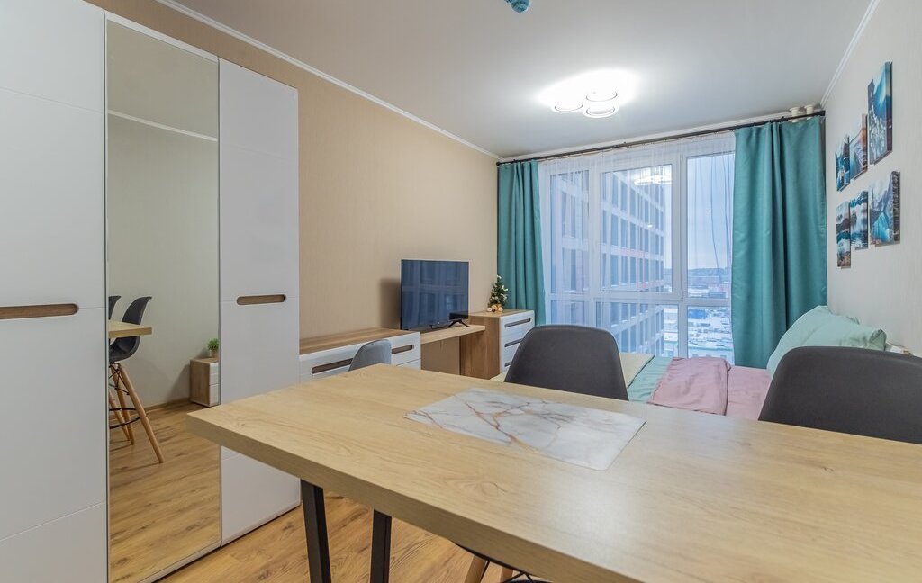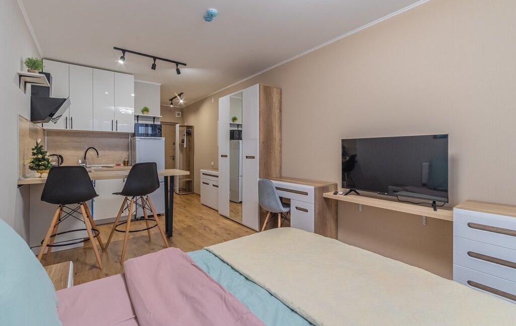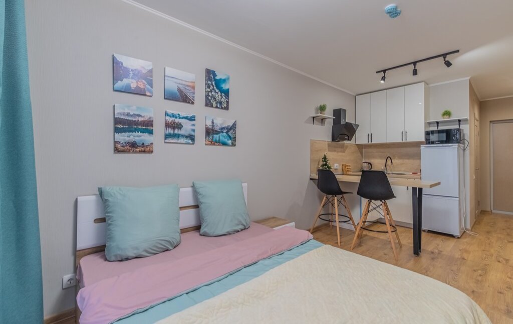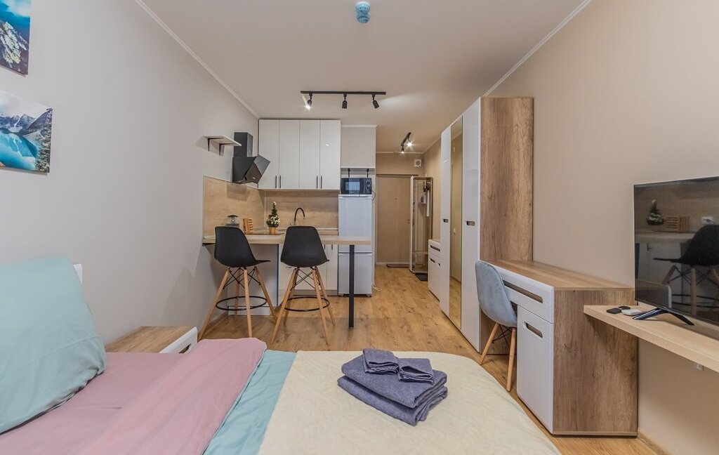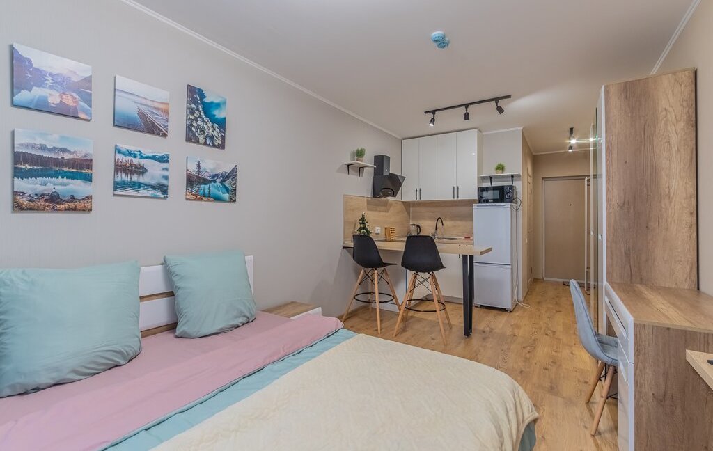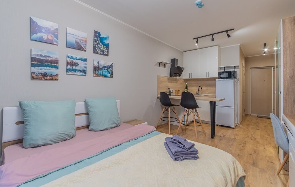 💜Уютные апартаменты со спальней совмещенной с кухонной и обеденной зоной