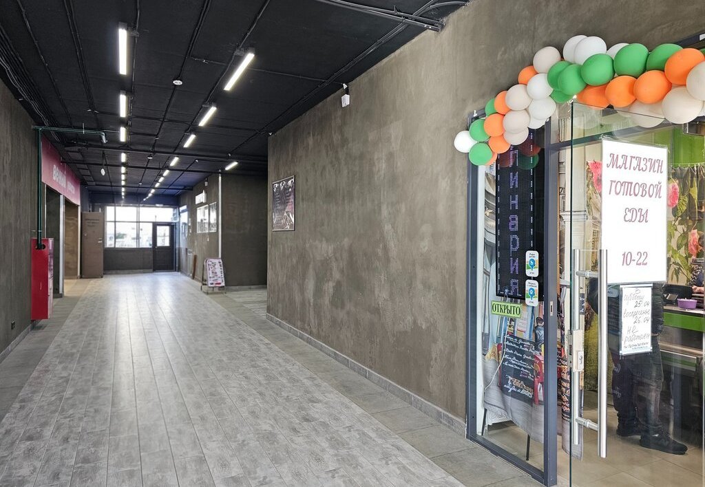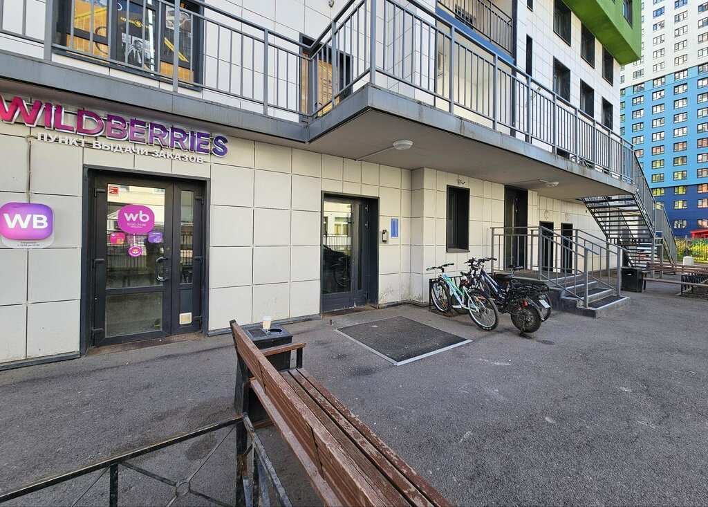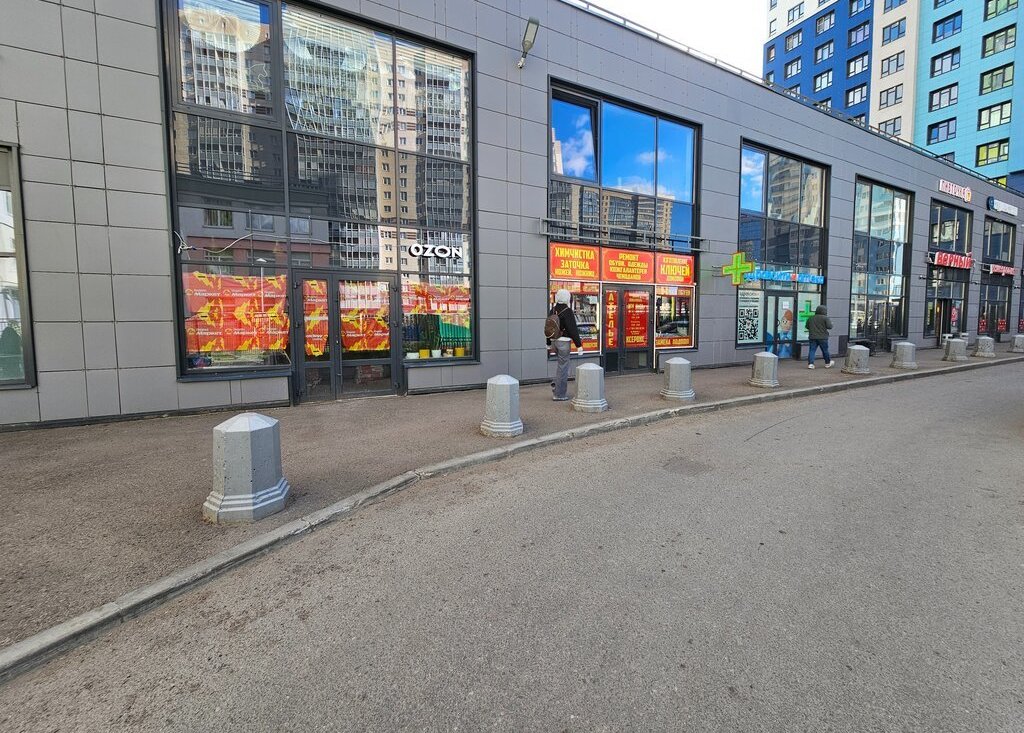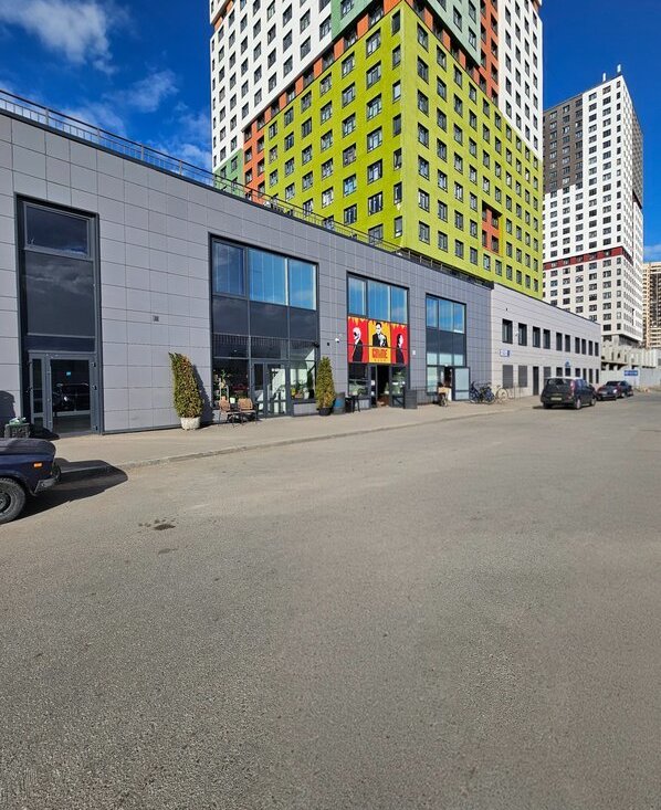 На первых этажах расположен торговый комплекс, в котором расположены кафе, продуктовые магазины, пункты выдачи Яндекса, Озона, Вайлдберриз. аптека, парикмахерская, цветочный магазин. До фитнесс-клуба около 7 минут пешком.