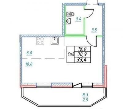 Квартира-студия: посёлок Парголово, Заречная улица, 11к6 (31 м²)