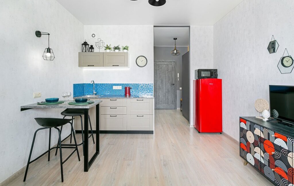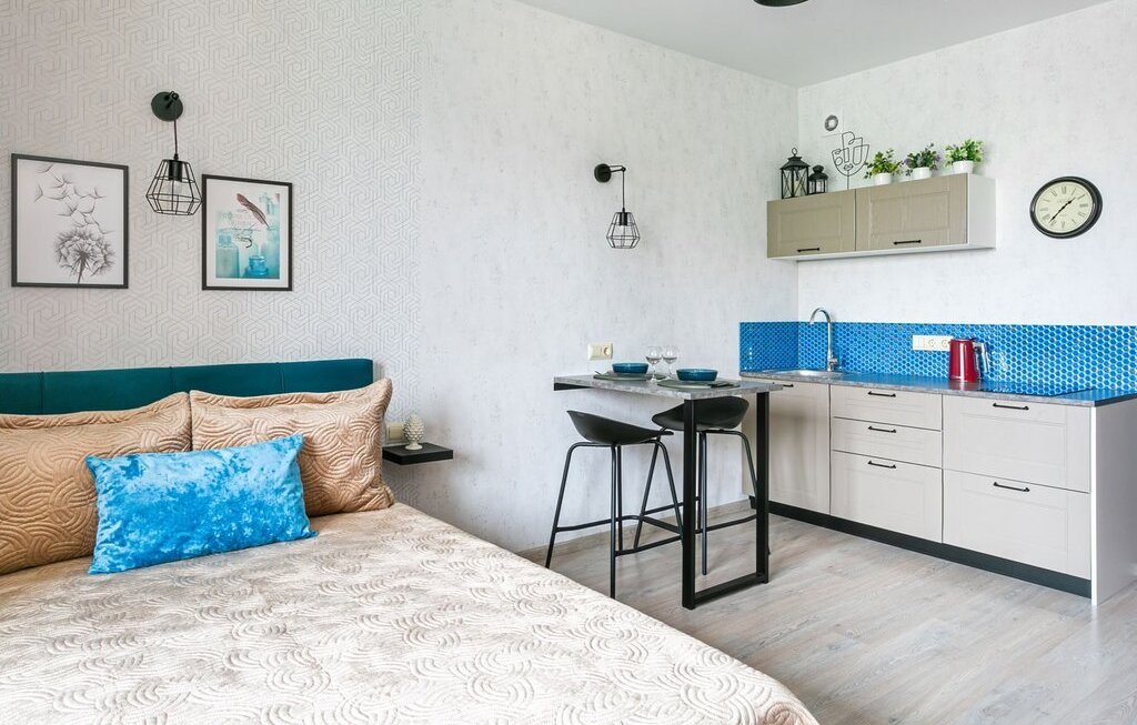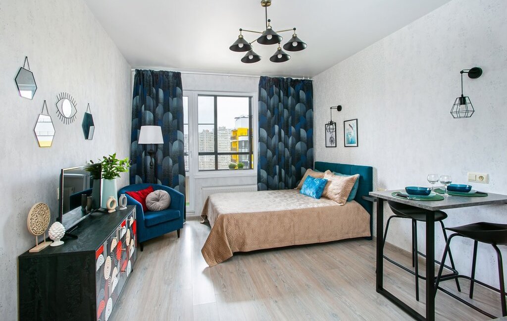 Продается стильная квартира-студия с дизайнерским ремонтом. Подходит, как для собственного проживания, так и в качестве инвестиции (для посуточной, или долгосрочной аренды). Вся обстановка и оборудование на фото остаются новому владельцу: мебель, техника, постельное белье, покрывало и подушки, два комплекта полотенец, утюг и гладильная доска, вентилятор, декор, посуда, пылесос, стремянка, оборудование для мытья пола. ВСЕ ВКЛЮЧЕНО! Новому владельцу остается заехать и разложить свои вещи в шкафу!