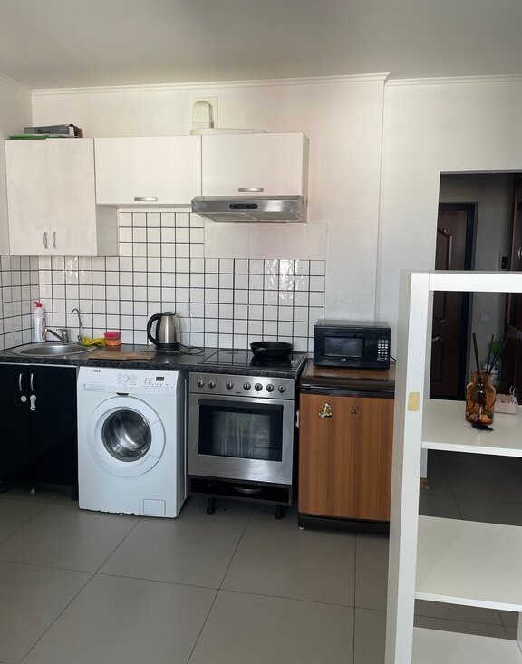 В квартире есть всё необходимое: мебель, стиральная машина, плита, микроволновка, холодильник. Санузел с небольшой ванной.