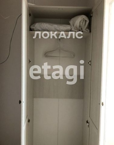 В коридоре шкаф для одежды с вешалками и постельными принадлежностями.
