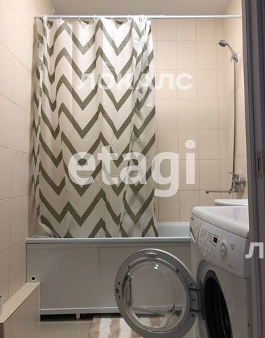 Совмещенный просторный санузел с большой ванной, стиральной машиной Samsung на 5 кг и вытяжкой.