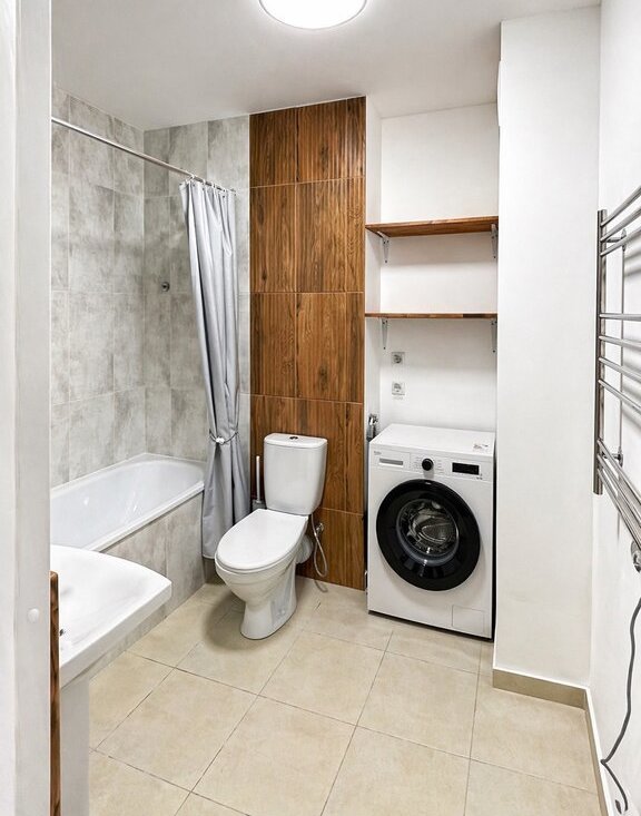 В квартире еще никто не жил, выполнен качественный ремонт, и она полностью готова к заселению. В наличии новая бытовая техника: стиральная машина, посудомоечная машина, холодильник, электрическая плита.