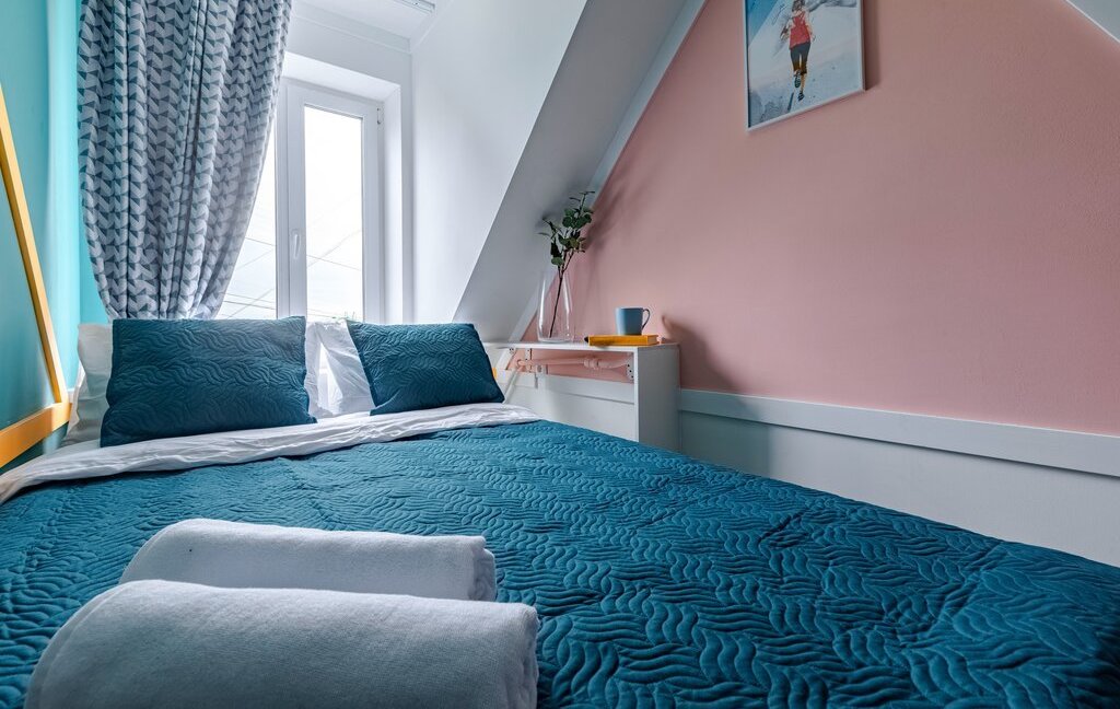 - Удобная двуспальная кровать с качественным матрасом, обеденный стол