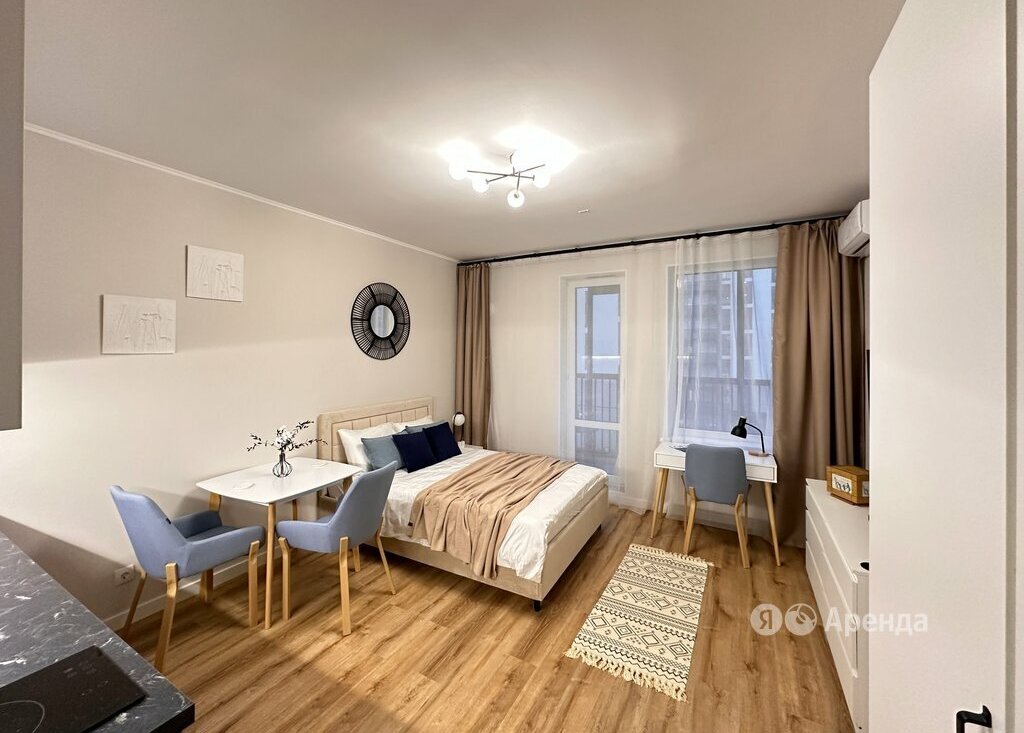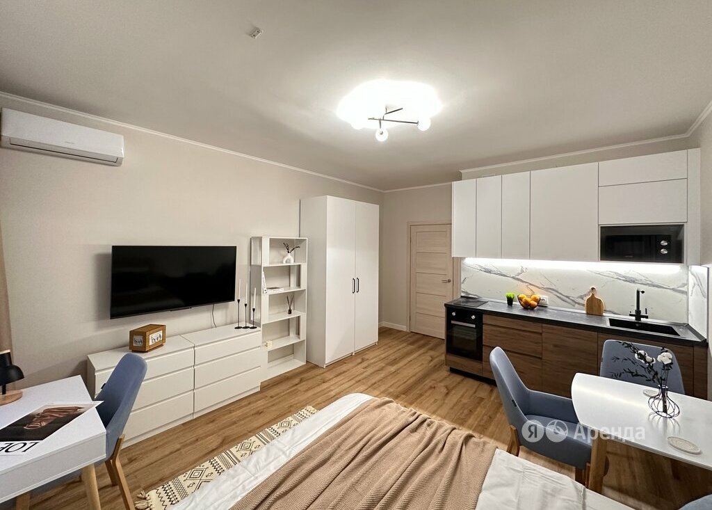 Сдаётся студия площадью 27 кв.м. с евроремонтом на 5 этаже в 18-этажном доме на срок от 11 месяцев. Из техники есть: