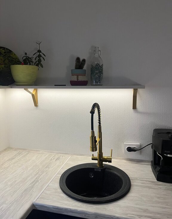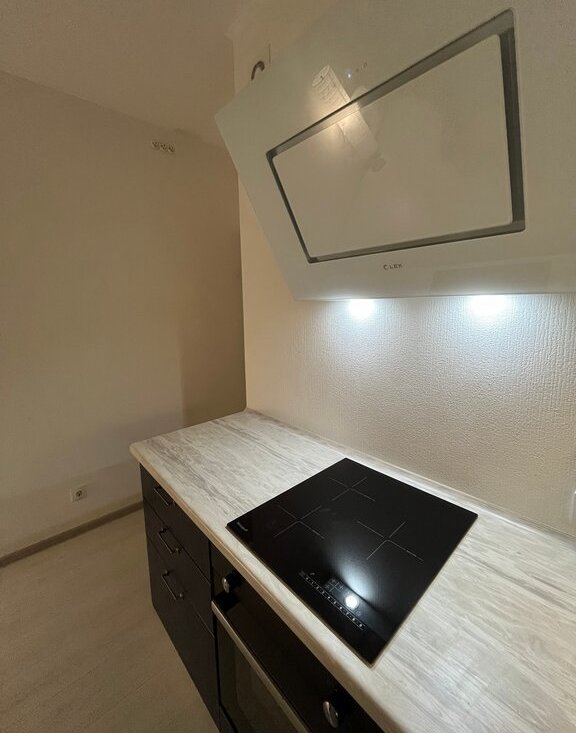 · Встроенная кухня с техникой (холодильник, индукционная варочная, вытяжка, духовка, посудомойка, микроволновка).