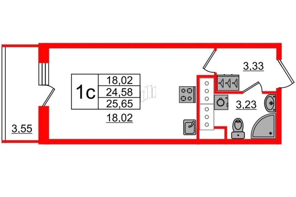Квартира-студия: Санкт-Петербург, Арцеуловская аллея, 21 (24.5 м²)