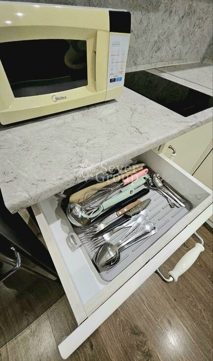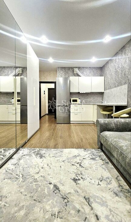 Студия очень чистая, ухоженная и уютная. Сделан свежий ремонт. Никогда не сдавалась. Спальное место, мебель и кухня - отличного качества, так как все делалось под себя. Хорошо укомплектована: ТВ, холодильник, микроволновка, стиральная машина, пылесос, посуда. Прекрасные соседи, шума нет.