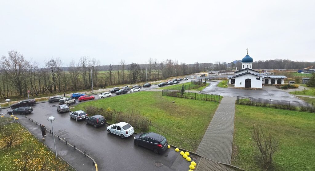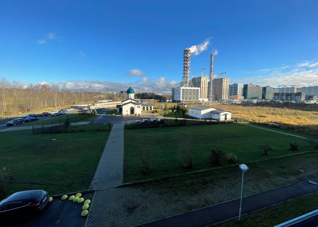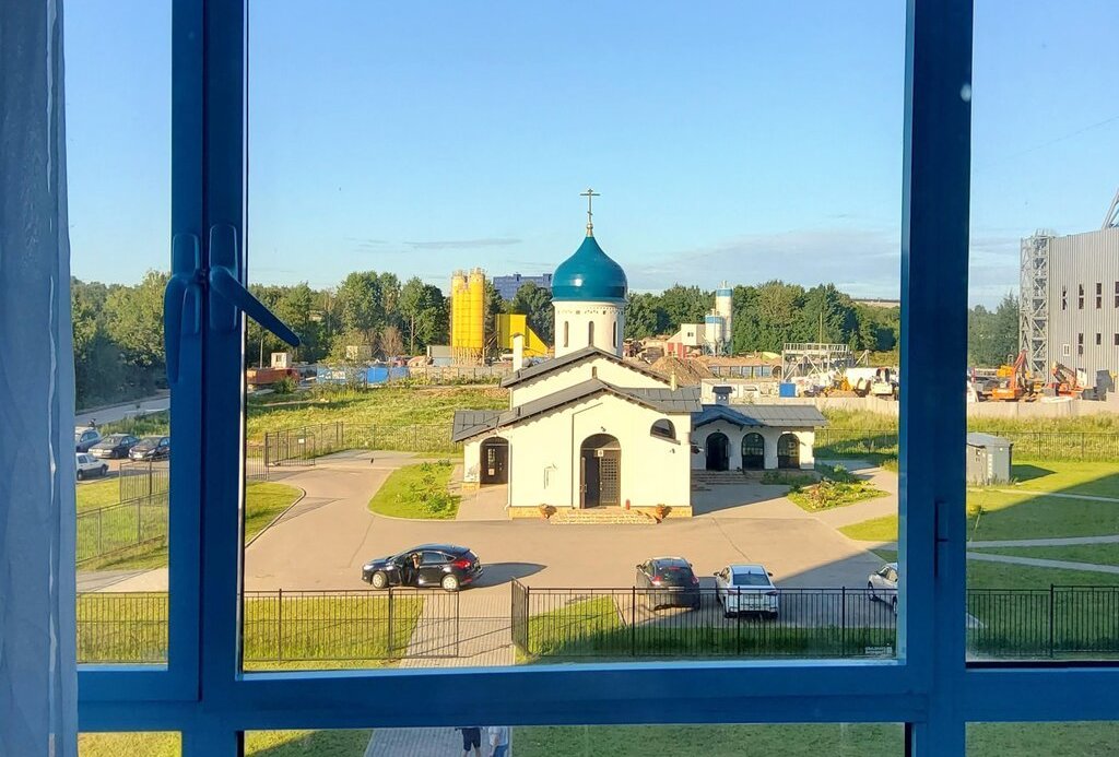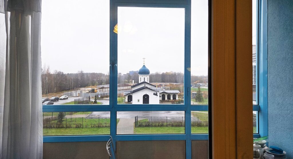 Третий этаж, красивый вид на небольшую церковь и поля. Важно, что вид из окна не будет застроен в будущем: согласно генеральному плану, это рекреационная зона вдоль реки Каменки.