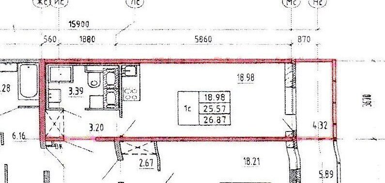 Квартира-студия: Санкт-Петербург, Арцеуловская аллея, 23к1 (25.57 м²)