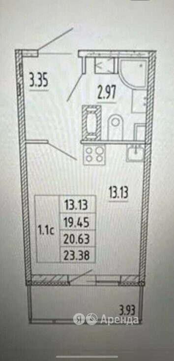 Квартира-студия: Санкт-Петербург, Арцеуловская аллея, 9 (23 м²)