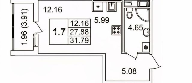 Квартира-студия: Санкт-Петербург, Белоостровская улица, 17В (31.8 м²)
