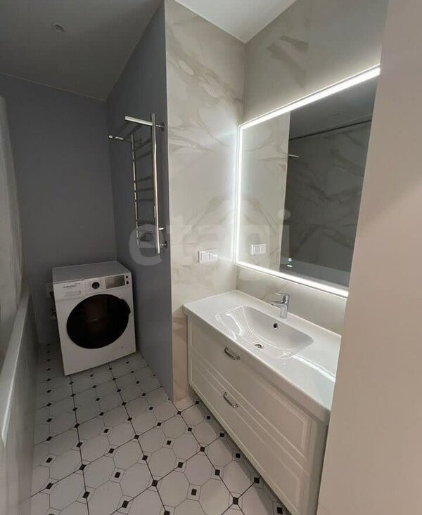 В квартире сделан качественный ремонт, есть вся необходимая мебель и техника, включая посудомоечную машину, в ванной установлен тёплый пол. Хорошая шумоизоляция.