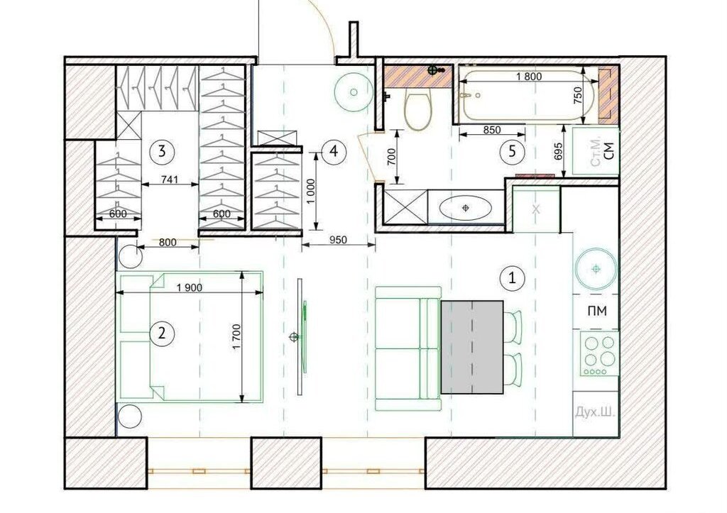 Просторная кухня, обособленная спальня, совмещённая ванная комната,вместительная гардеробная.