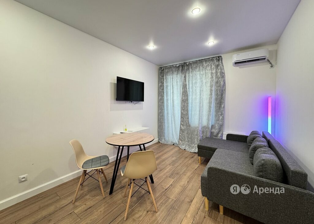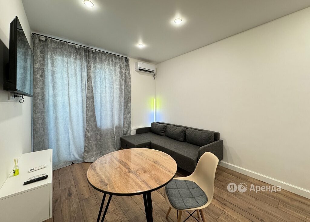 Сдаётся студия площадью 26 кв.м. с евроремонтом на 3 этаже в 14-этажном доме на срок от 11 месяцев. Из техники есть:
