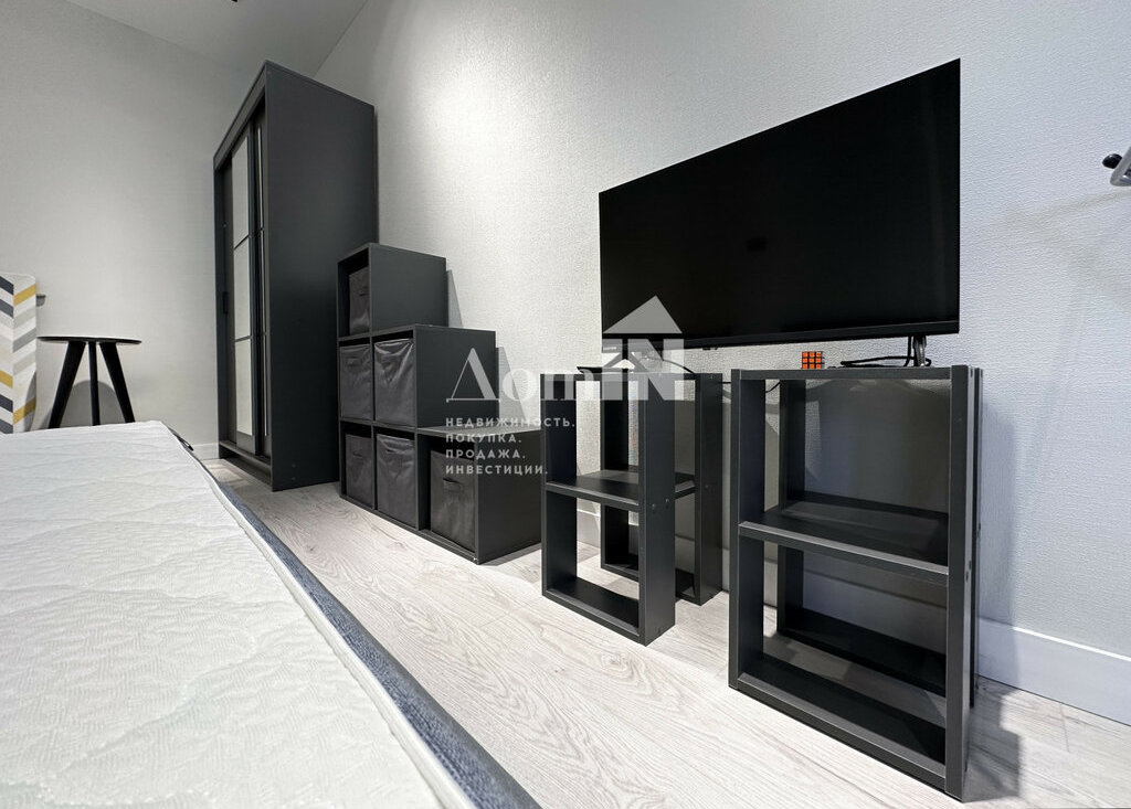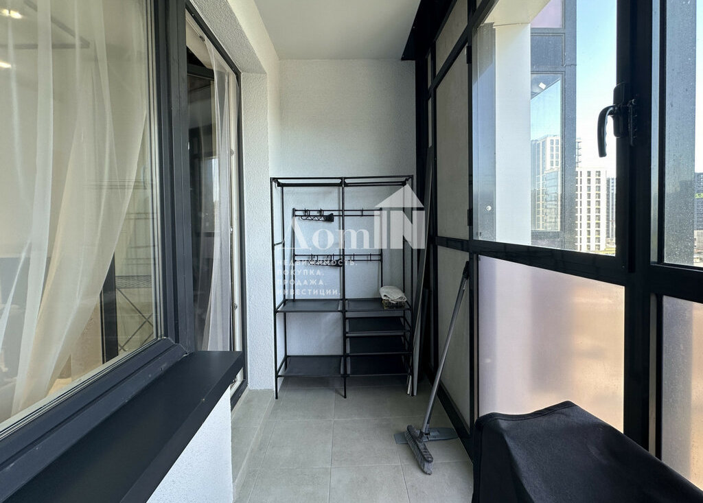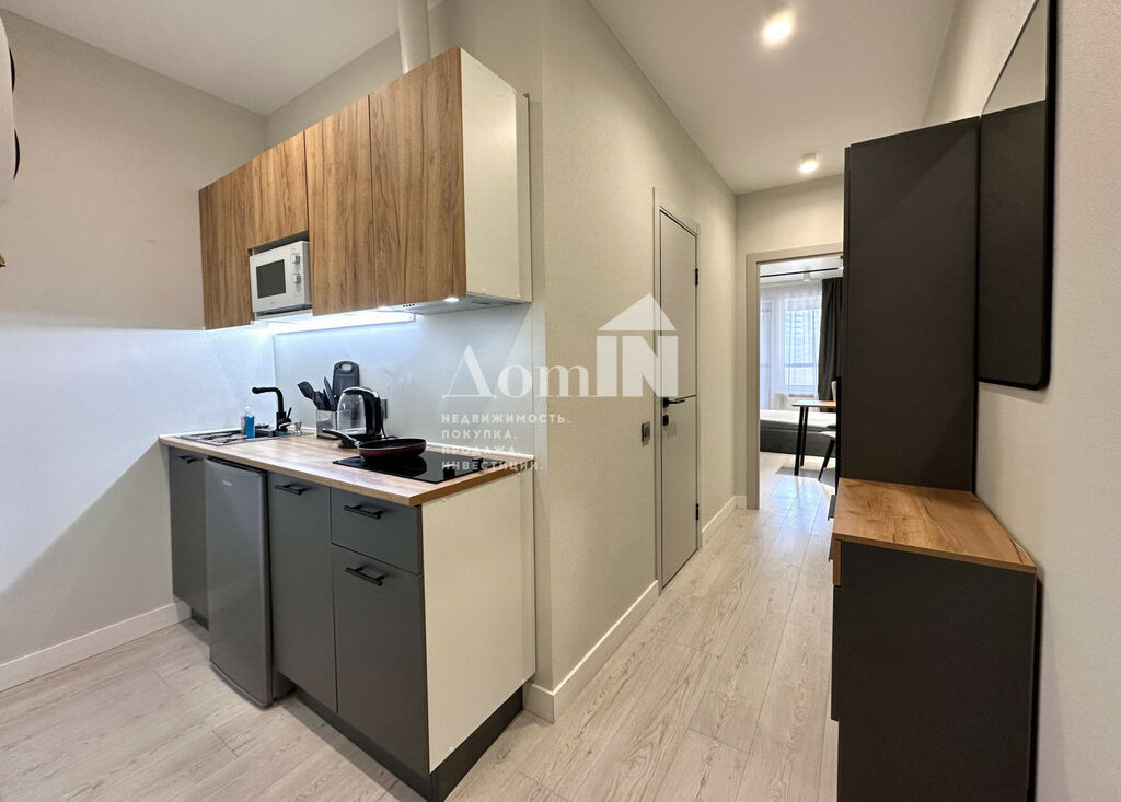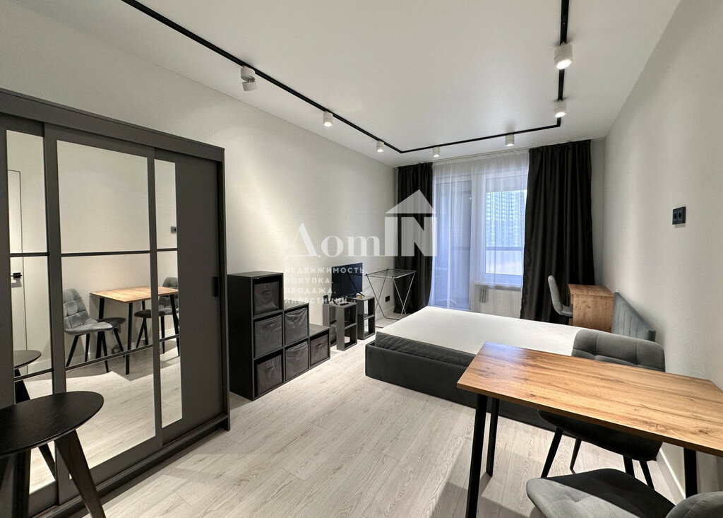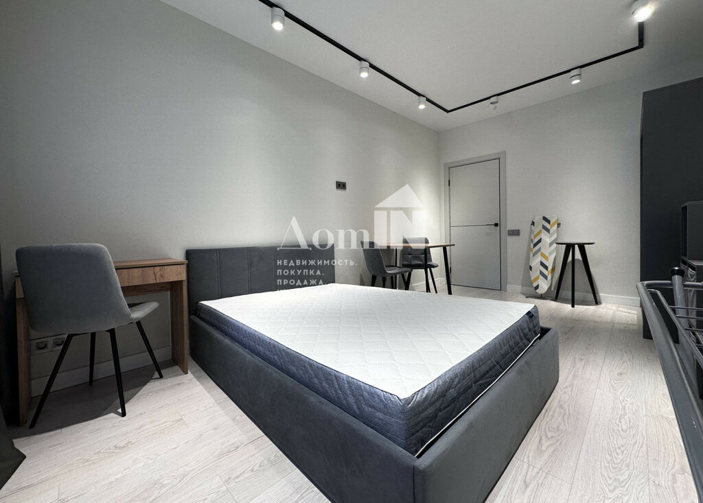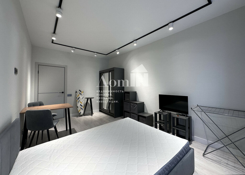 Стильный ремонт. Потолочные световые споты, позволяющие разделить функциональные зоны. Двуспальная кровать с ортопедическим матрацем, телевизор с Wi-Fi, большая система хранения и work-zone. Мини-кухня с плитой, микроволновкой, холодильником, обеденным столом и посудой. Просторный санузел с душевой и стиральной машиной. Застекленная лоджия с видом на залив. Есть все необходимые мелочи: утюг, фен, вешалки, полотенца, гладильная и сушильная доска. Заезжай и живи!