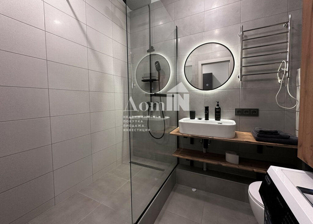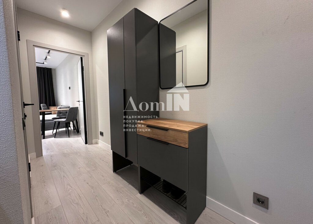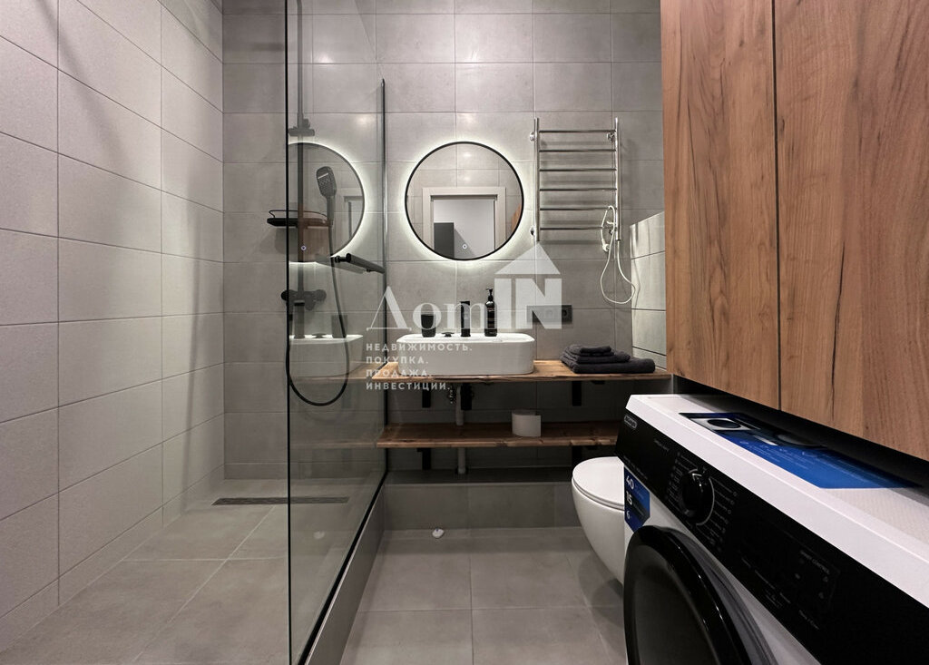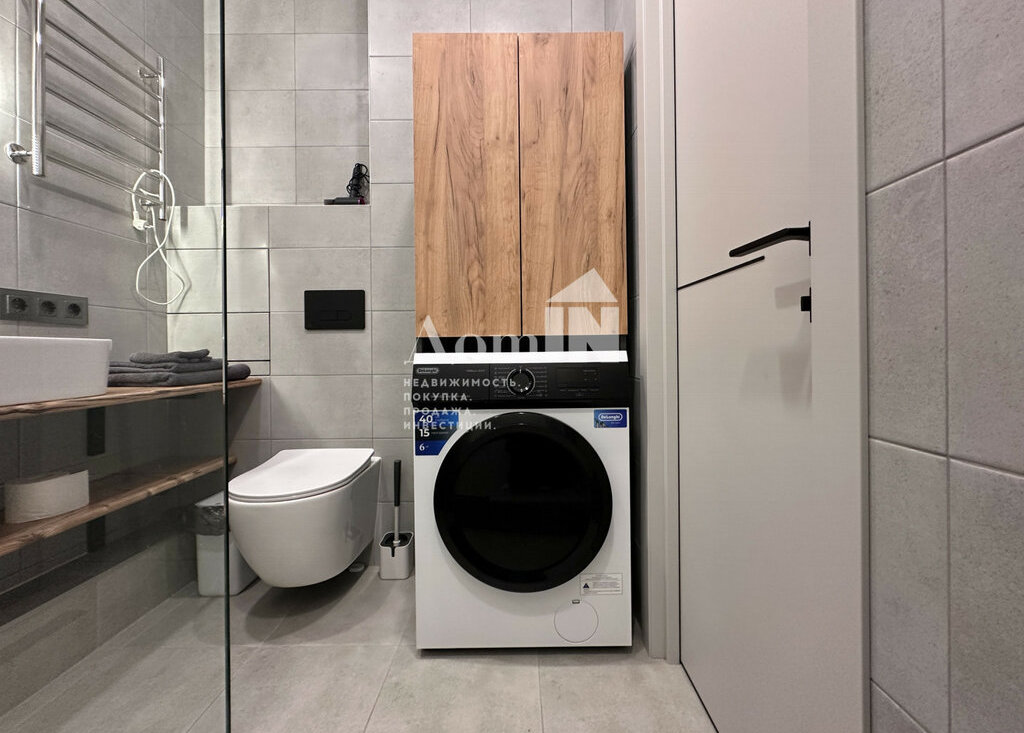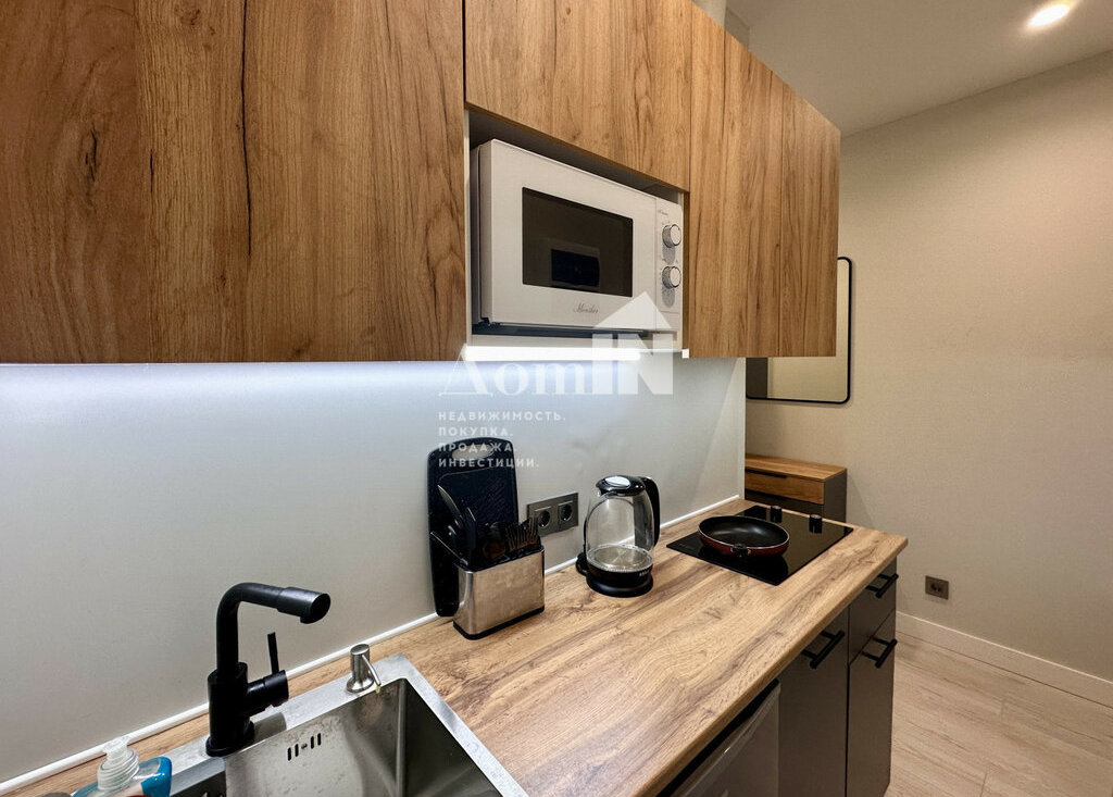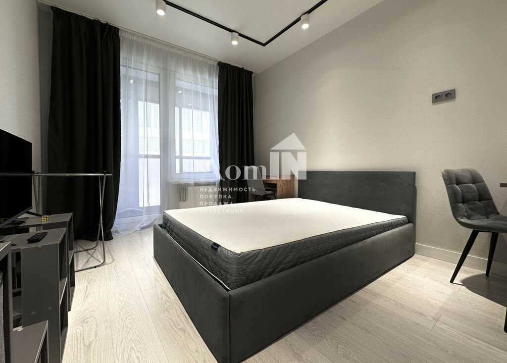 Стильный ремонт. Потолочные световые споты, позволяющие разделить функциональные зоны. Двуспальная кровать с ортопедическим матрацем, телевизор с Wi-Fi, большая система хранения и work-zone. Мини-кухня с плитой, микроволновкой, холодильником, обеденным столом и посудой. Просторный санузел с душевой и стиральной машиной. Застекленная лоджия с видом на залив. Есть все необходимые мелочи: утюг, фен, вешалки, полотенца, гладильная и сушильная доска. Заезжай и живи!