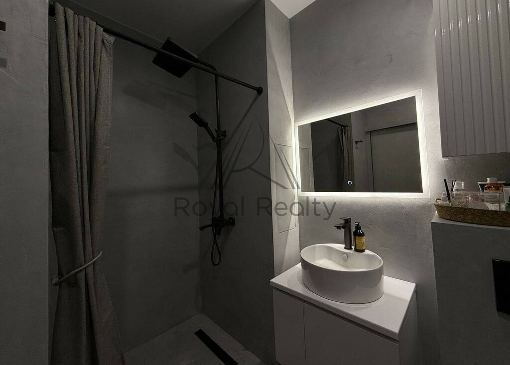 · Полностью выполнена из микроцемента — стильного и приятного материала.