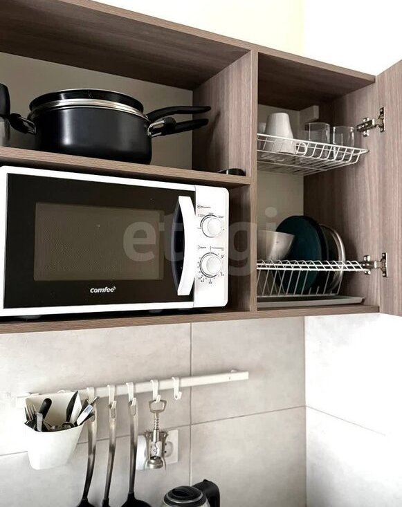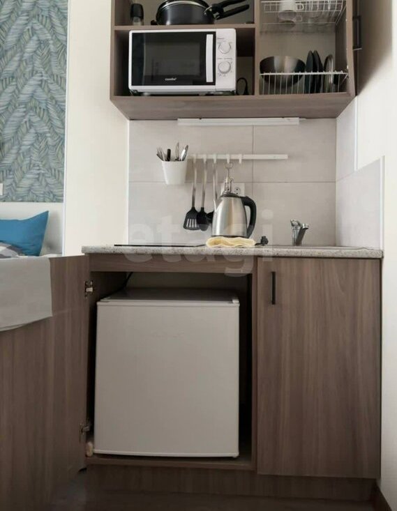 В квартире есть все для комфортного проживания: кровать, кухонный гарнитур, посуда, постельное белье, стол со стульями, техника.