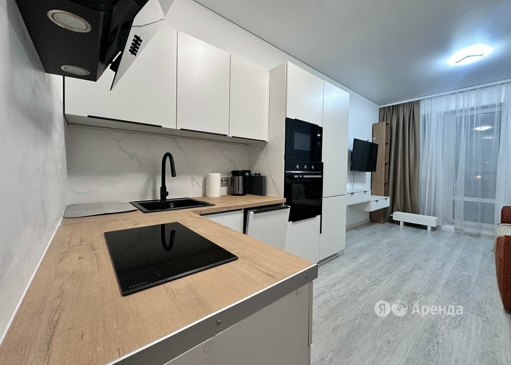 Сдаётся студия площадью 24 кв.м. с евроремонтом на 3 этаже в 15-этажном доме на срок от 11 месяцев. Из техники есть: