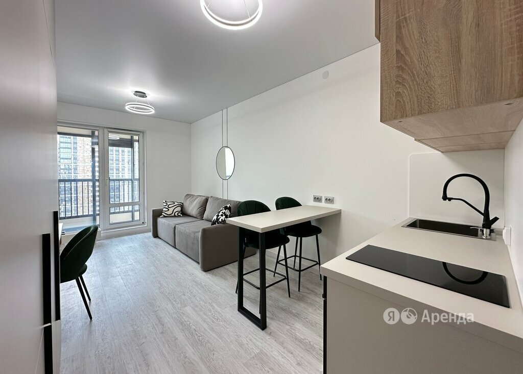 Сдаётся студия площадью 24 кв.м. с евроремонтом на 11 этаже в 19-этажном доме на срок от 11 месяцев. Из техники есть: