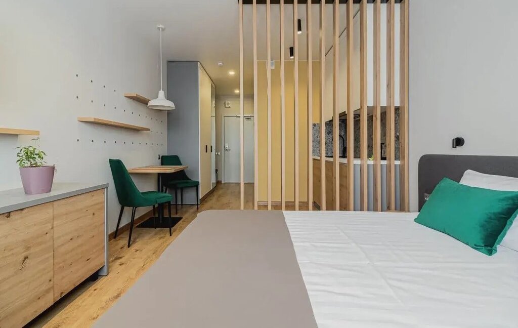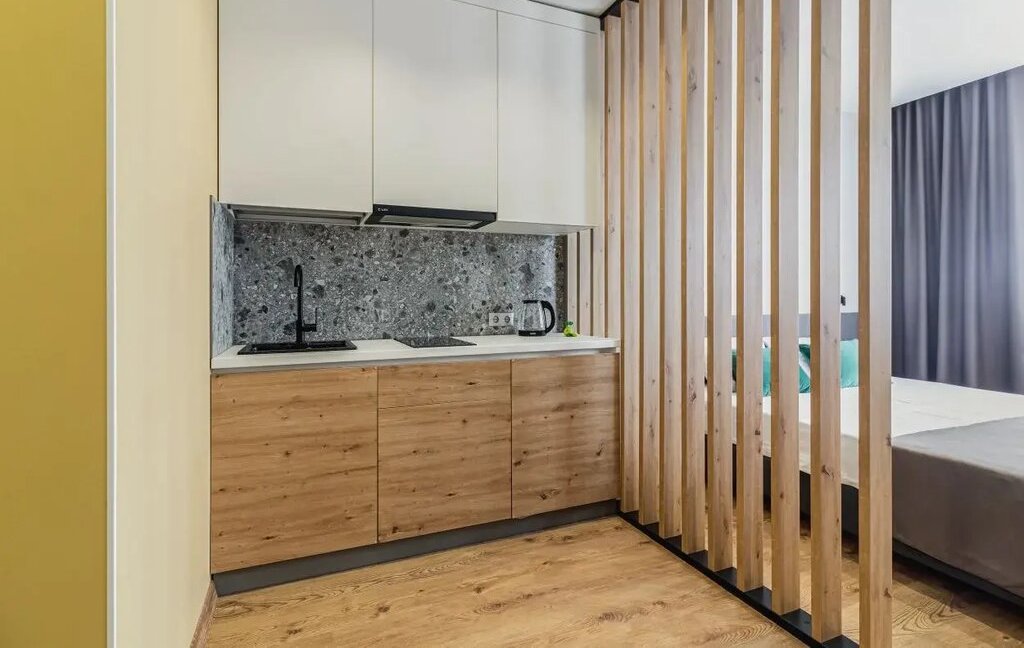 Полностью оборудованная для жизни студия(стиральная машинка,варочный плита,микроволновка)