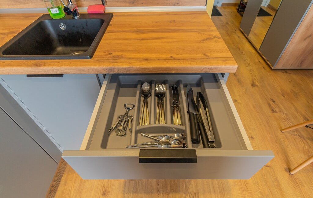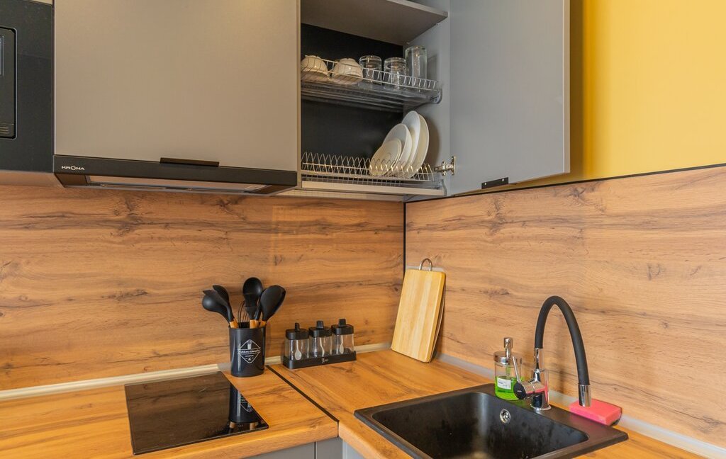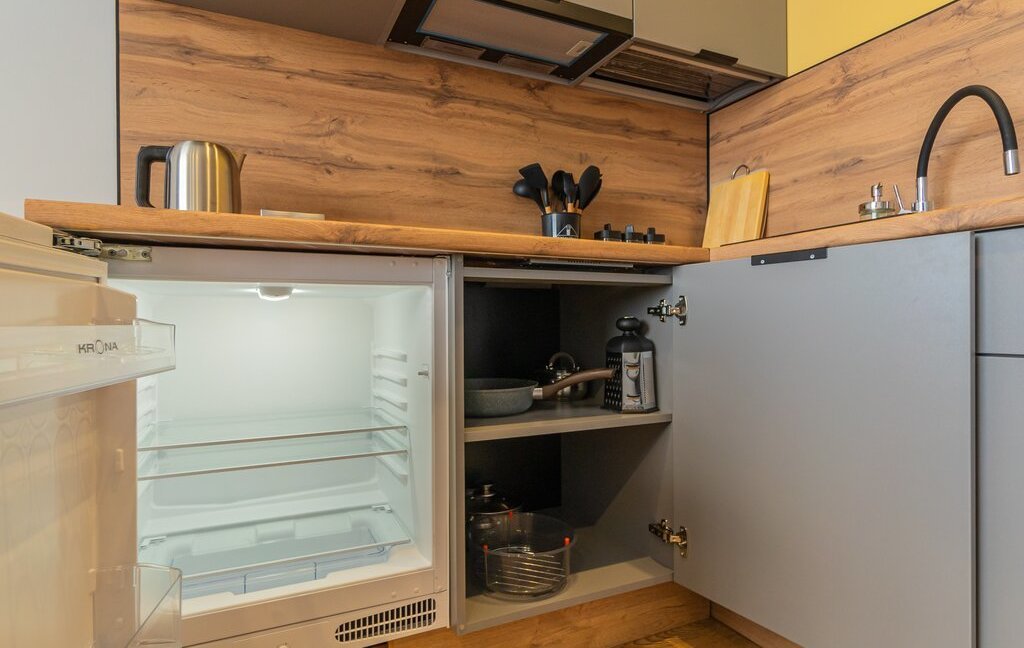 - обеденная зона (холодильник, чайник, микроволновка, плита, столовая группа, посуда на 2 персоны, стол со стульями, посудомойка)