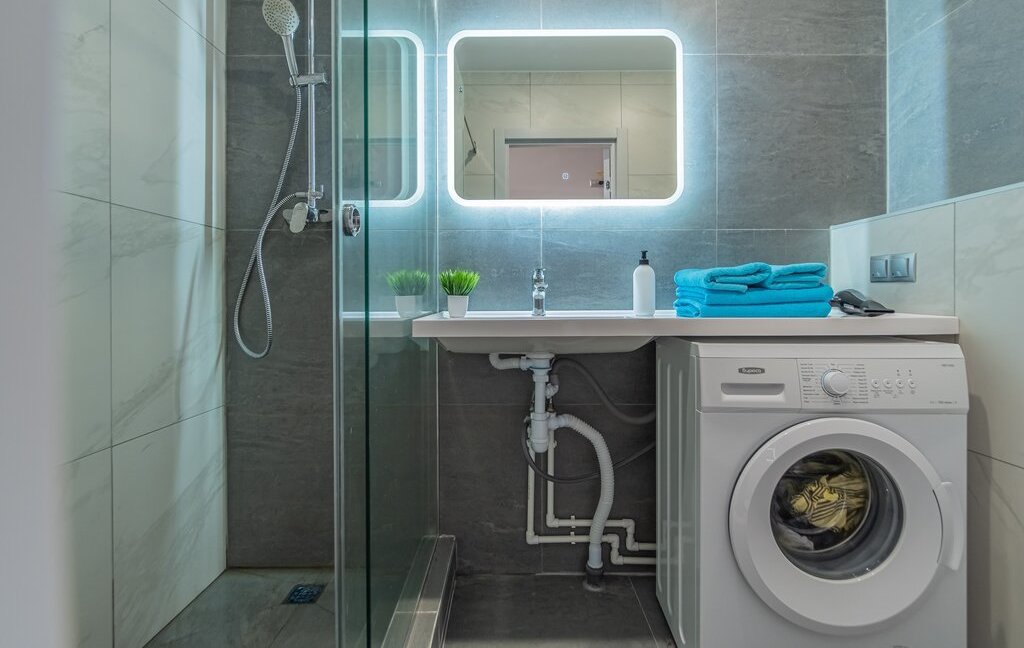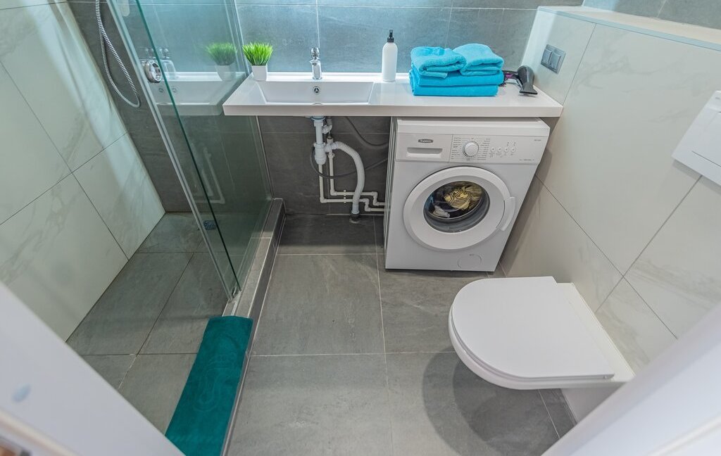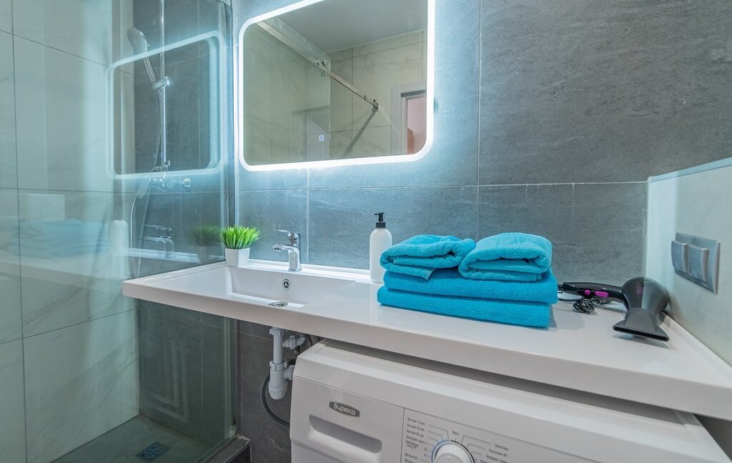 - Сан.узел (душевая кабина, туалет, стиральная машинка, сушилка, фен)