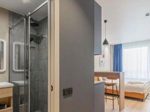 Квартира-студия площадью 27 кв м с застекленной лоджией 3 кв м на 6 этаже 25-этажного дома.
