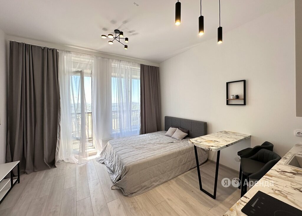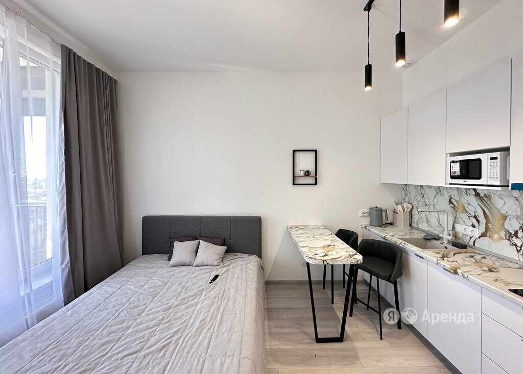 Сдаётся студия площадью 24 кв.м. с евроремонтом на 17 этаже в 17-этажном доме на срок от 11 месяцев. Из техники есть: