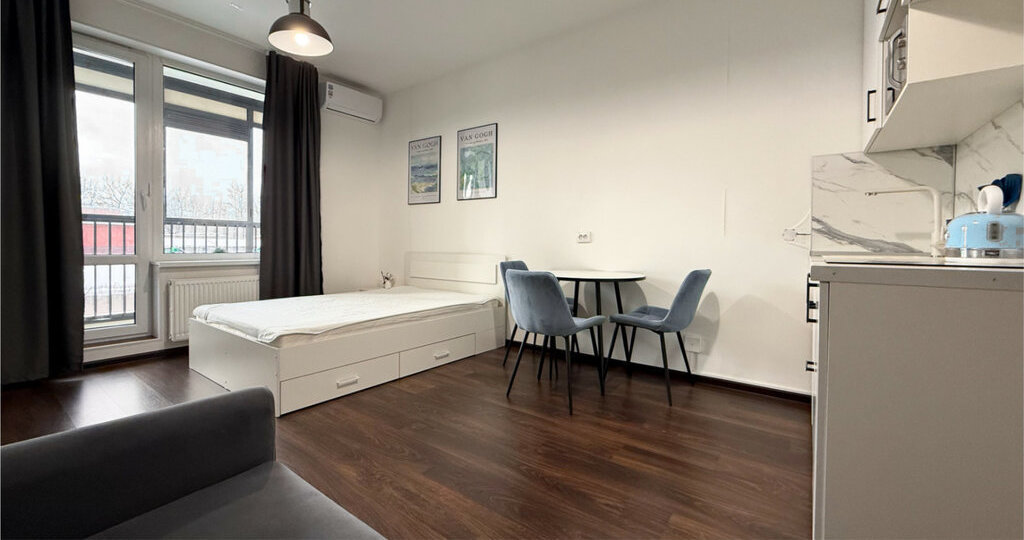 Предлагается в аренду на срок от трех месяцев отличная квартира-студия в новом доме ЖК "Стрижи" по адресу: ул. Фарфоровская, дом 7, корпус 2.