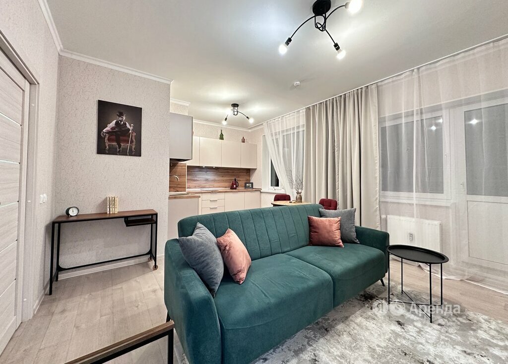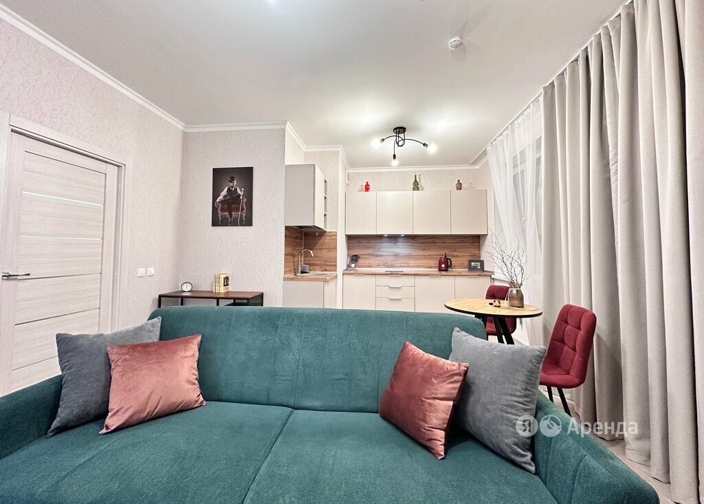 Сдаётся студия площадью 34 кв.м. с евроремонтом на 17 этаже в 19-этажном доме на срок от 11 месяцев. Из техники есть: