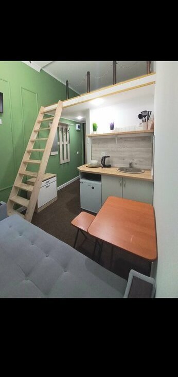 Сдаётсяна 1-2 месяца уютная двухуровневая студия с современным ремонтом на первом этаже кирпичного дома. Кухонная зона оборудована необходимой техникой: холодильник, микроволновая печь, посуда, столовые приборы,эл.чайник. В наличии рейл для одежды и складной диван.