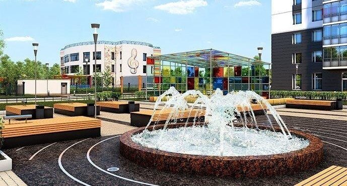Внутри двор очень облагорожен, есть во дворе фонтан. Живописное место, примыкающее к парку, хорошая транспортная доступность.