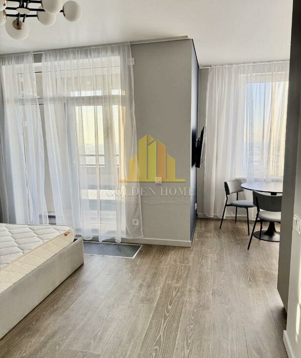 Новая большая студия на высоком этаже в новом сформированном районе с однородной средой и развитой инфраструктурой.