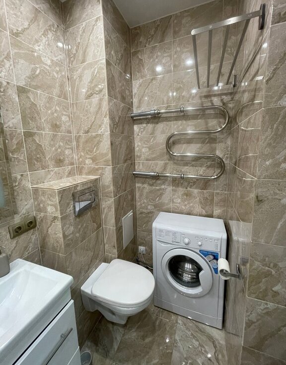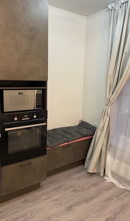 В квартире есть все необходимое: новая стиральная машина, посудомойка, современный кухонный гарнитур, холодильник, плита, духовка, микроволновая печь, вместительная гардеробная с подвесной системой.
