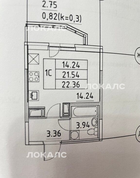 Квартира-студия: Санкт-Петербург, Комендантский проспект, 61 (22.2 м²)