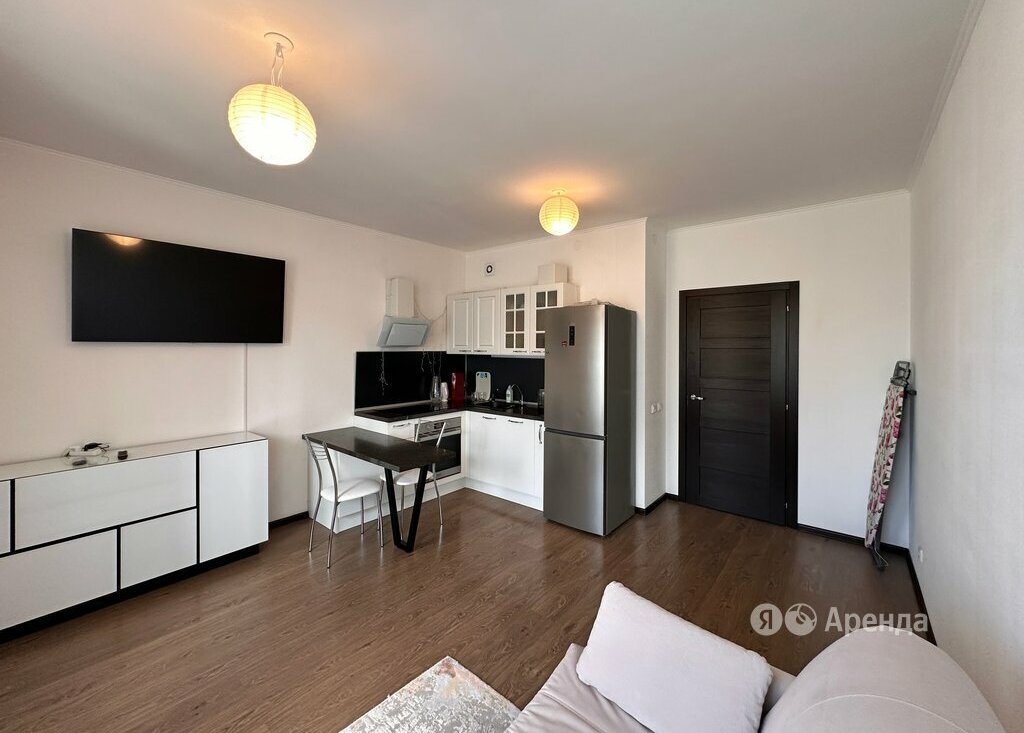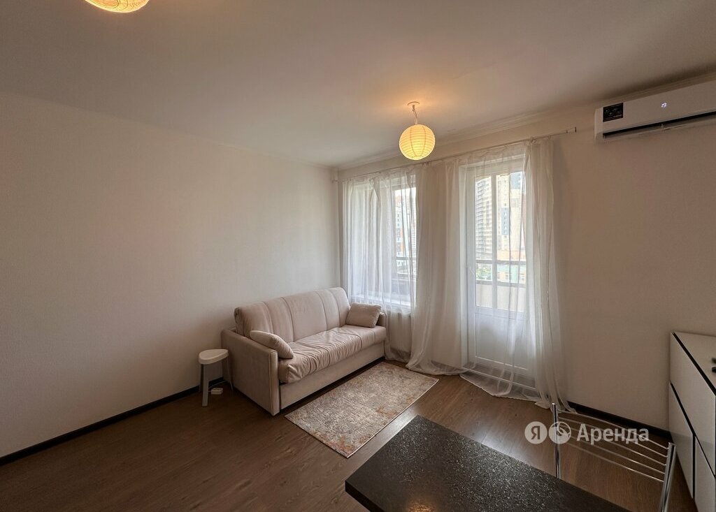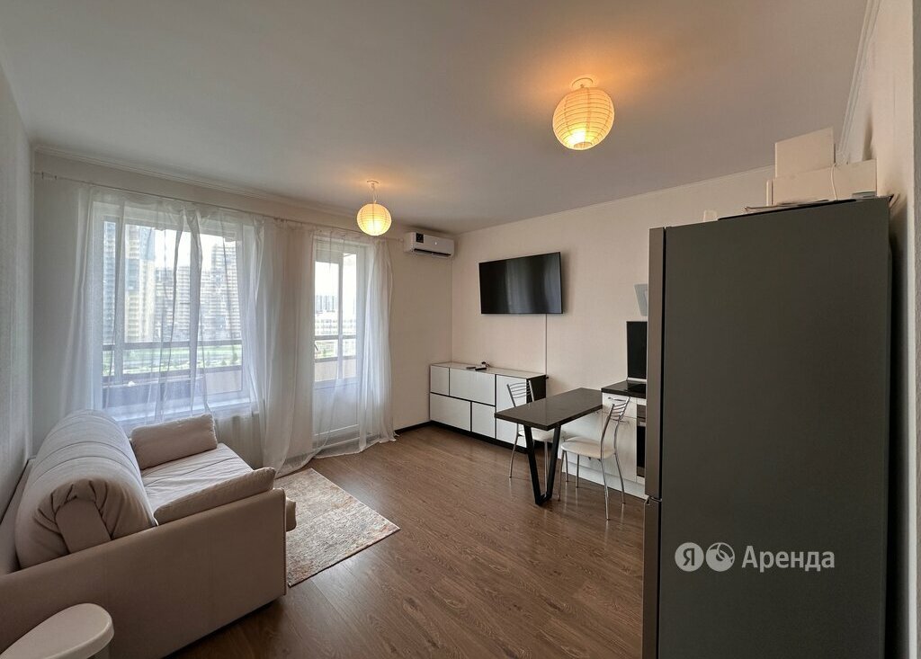 Сдаётся студия площадью 25 кв.м. с евроремонтом на 6 этаже в 25-этажном доме на срок от 11 месяцев. Из техники есть: