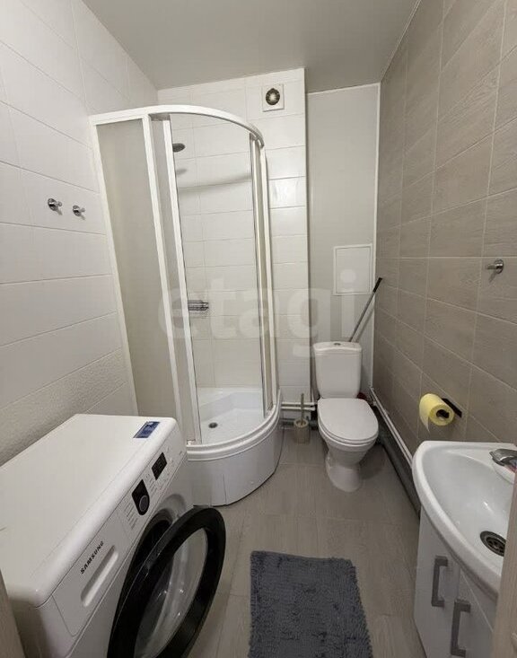 • Санузел совмещенный с душевой кабиной и стиральной машиной для вашего удобства.
